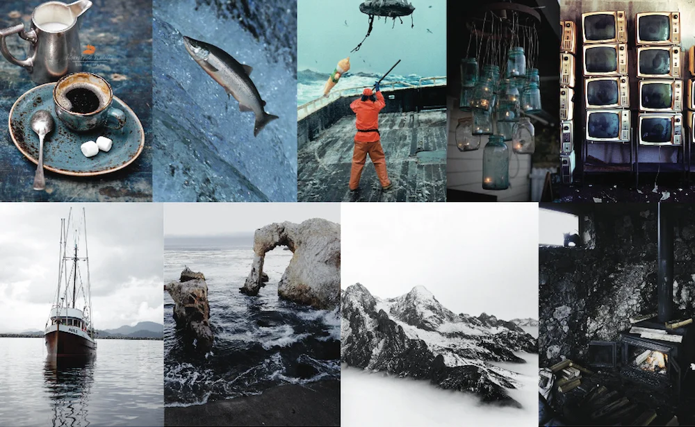 Deep sea fishing boasts a stormy palette characterized by waves lapping mercilessly against the jagged cliffs.